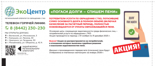 Региональный оператор по обращению с твердыми коммунальными отходами (ТКО) «ЭкоЦентр» объявляет акцию «Погаси долги – спишем пени».
